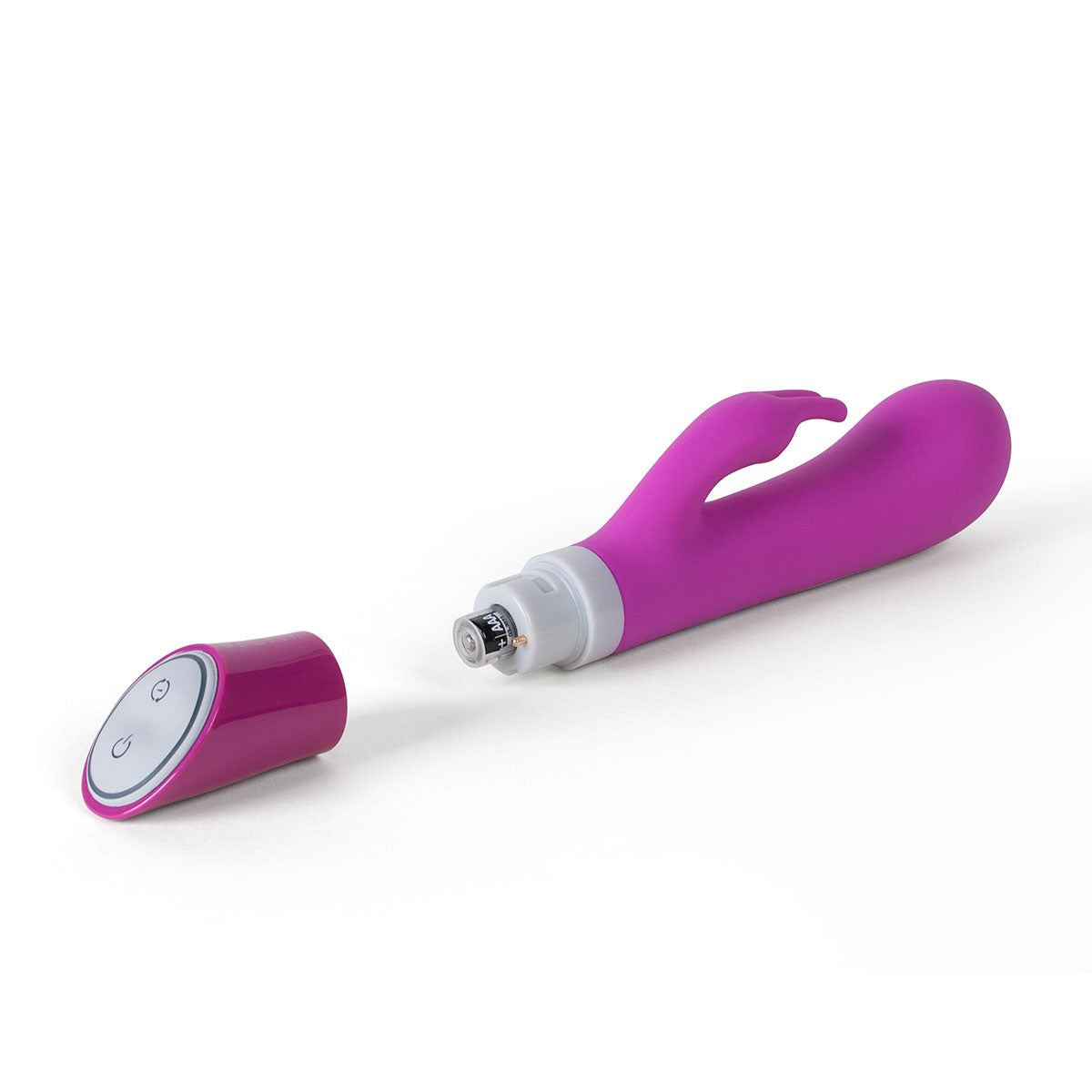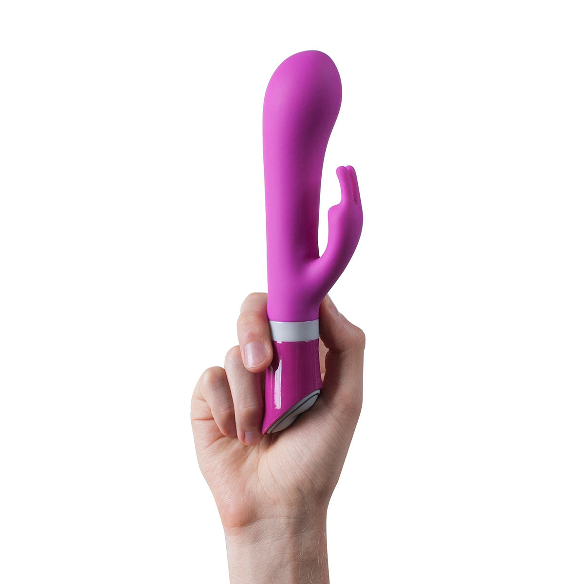 The Bwild Deluxe Bunny combines twin motors and 6-funtions for maximum pulsating power in both the shaft and pintpoint-precise tickling bunny. Waterproof and made from silky smooth silicone. Though nice and sturdy once positioned, the bunny flexes nicely, allowing for perfect placement. The dual stimulating shape, perfectly g-spot seeking shaft and big, full coverage bunny clitoral stimulator ensure each pleasure point is paid the attention it deserves with equal intensity. The Bwild Deluxe Bunny features 6-functions of steady, pulsating and escalating power which stimulate each body contact point courtesy of twin motors. The Bwild Deluxe Bunny features a separate on/off button to function button.