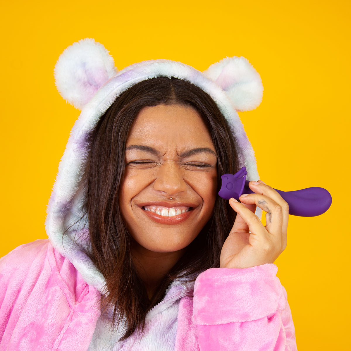 Shimmer comes from a world with long days and long nights, so they love making the most of the moment. His tail is curled just right, specifically shaped to unlock deep G-spot and P-spot stimulation. Paired with the powerful vibration settings, users will be shimmering, too! Easily fold fingers over Shimmer's fins for an ergonomic grip when pleasuring solo or with others. These same fins create protection, making anal play safe and succulent. Shimmer is a friend worth spending many moments with.