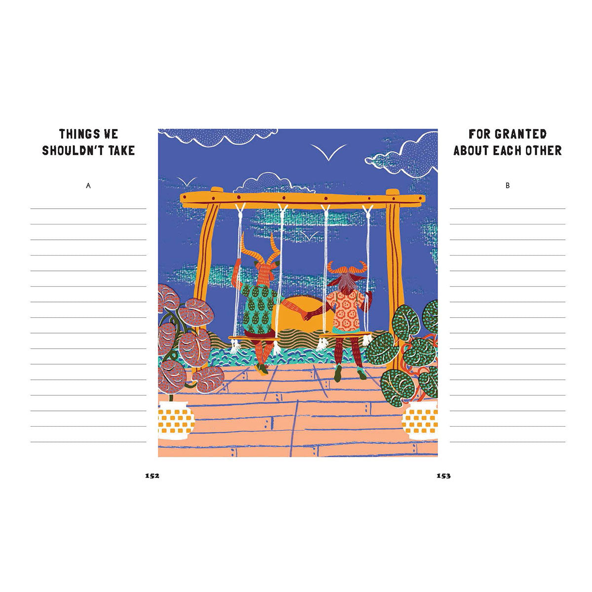 Taking time to journal together is a meaningful way for couples to connect. Designed to spark conversation and intimacy, this illustrated journal features over 75 prompts about your past, present, and future as a couple. From "favorite memories" and "what I love about you" to "first impressions of each other" and "things we agree to disagree on", topics are thought-provoking, sweet, humorous, and honest. With a handful of activities and quizzes (drawing amateur portraits, playing Who's More Likely To?), Date Night In offers a fun and accessible way for you to reflect and dream together, and create a lasting and unique keepsake in the process.