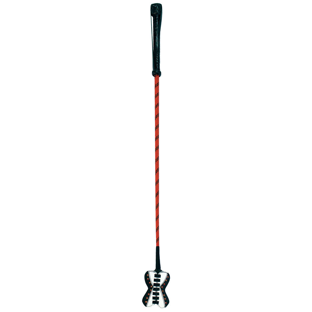 Unlace your lover and cinch up a naughty evening with a tightly hand-crafted, fashionably fetish leather crop. Handcrafted with a supple leather tip, red and black nylon covered length of the crop, and leather braided handle for a firm grip.