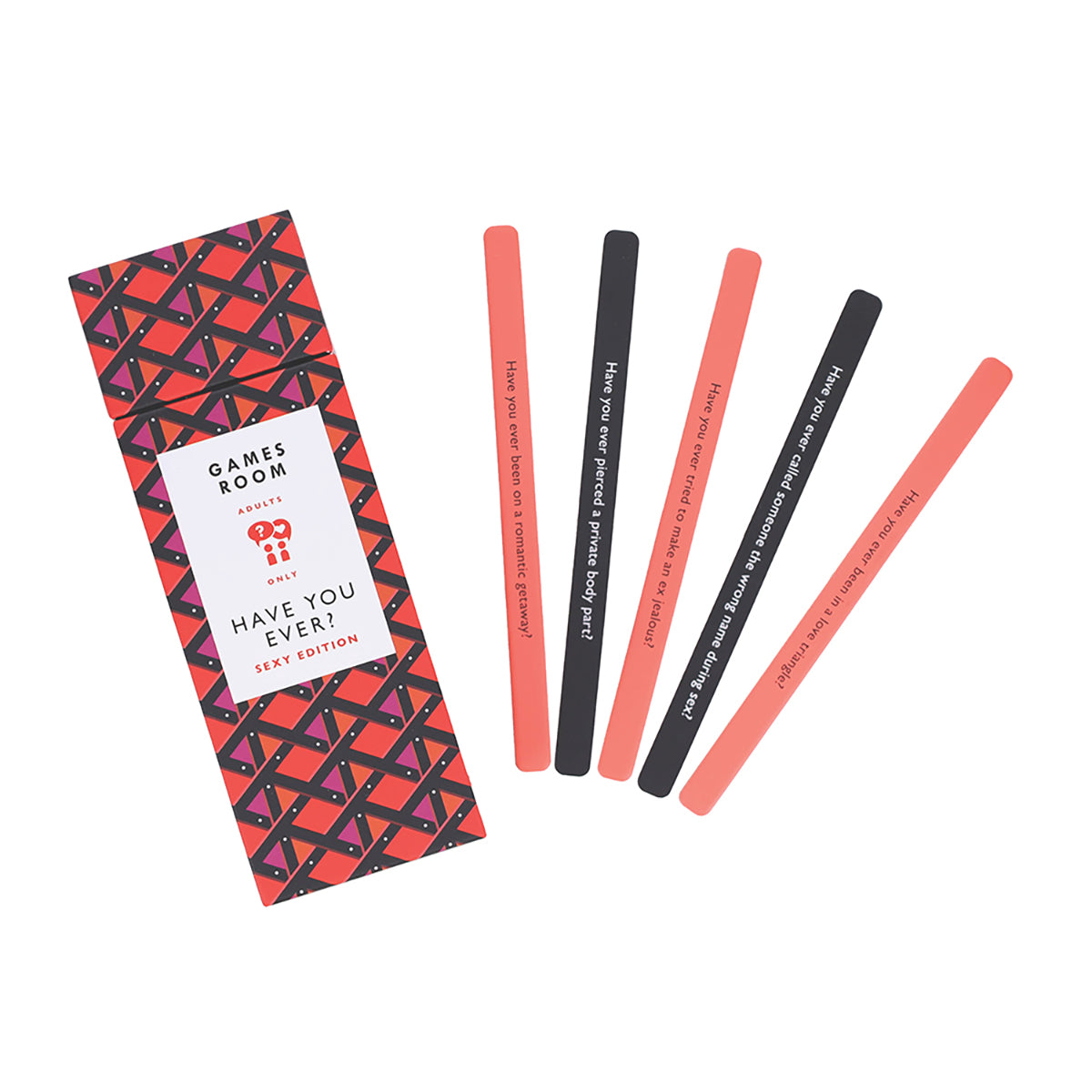With 100 "have you ever" questions on 50 double-sided sticks, these conversation starters range from benign to risqu. One side of the stick includes sweet, romantic, and funny questions, such as: