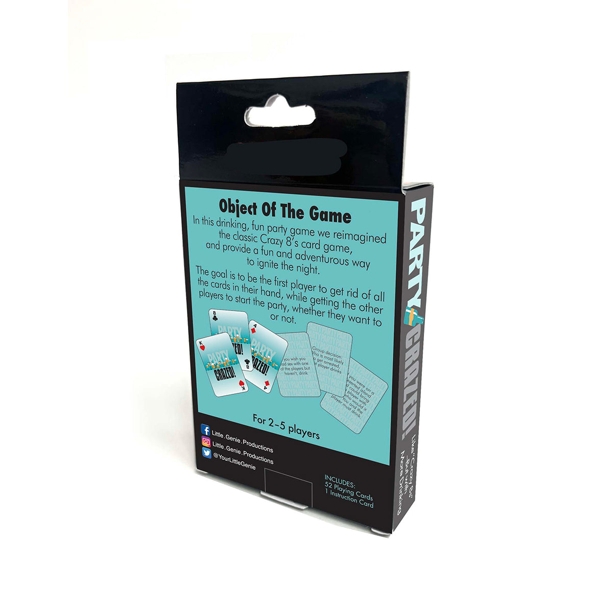 In this sexy, fun drinking themed reimagining of Crazy 8's, the goal is to be the first player to get rid of all the cards in their hand, while getting the other players to start the party.