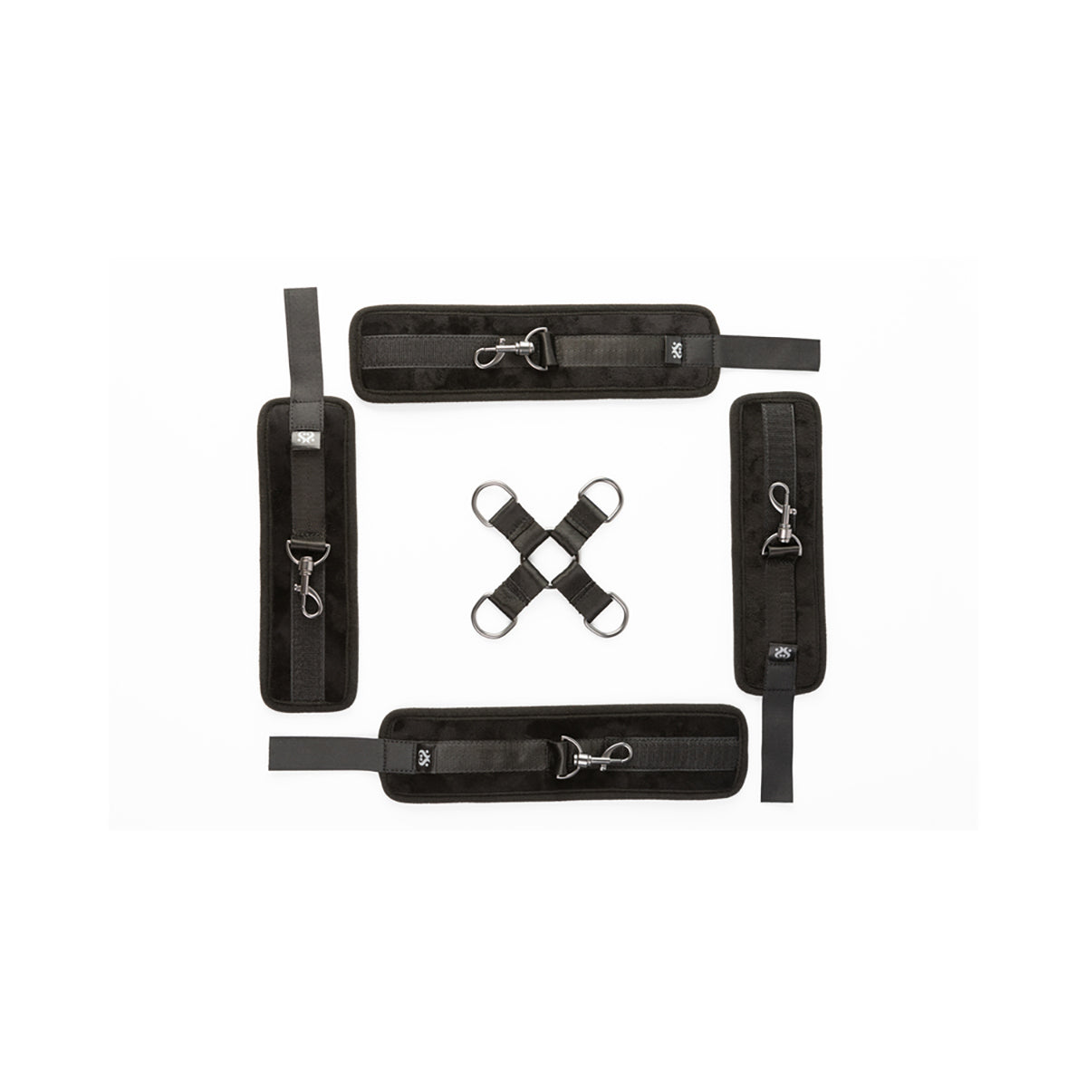 Unleash your wildest fantasies with the Sei Mio Hog Tied and Satisfied set, featuring 4 luxurious velvet-soft detachable cuffs designed for ultimate versatility and comfort. Perfect for securing your partner in a variety of positions, these cuffs provide a snug yet gentle hold that enhances the thrill of restraint play.