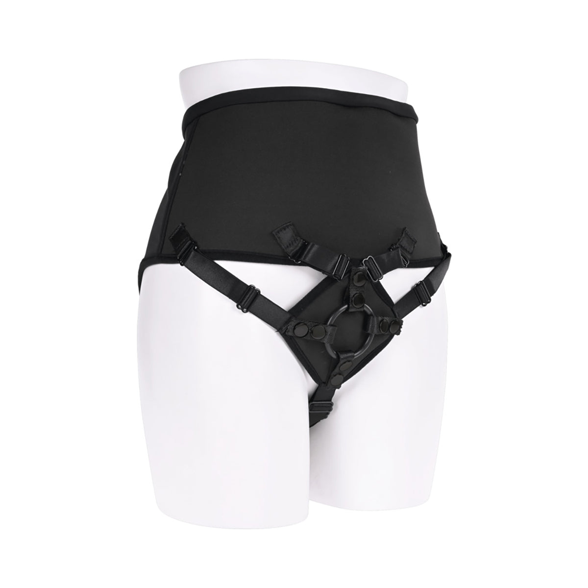 Explore powerful intimacy through the perfect blend of comfort and control with the High Waisted Corset Strap On. Designed with a high 9uality, stretchy fabric, the soft material forms comfortably across your body and uses adjustable corset laces to find the the perfect fit. The added adjustable straps leading to the padded O Ring connector keeps your dildo secure with use and flexible to adapt to wherever your play takes you. Express your desires in the soft commanding presence of your self-assured sensuality and delve into pleasure that has no limits.