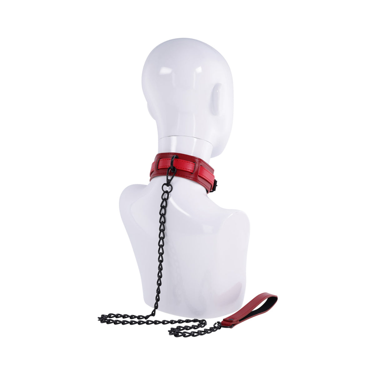 Take control in style with the Ex's & Oh's Collar and Leash. This striking set features a bold, deep red faux leather collar paired with a sturdy matte black chain leash for a look that's as commanding as it is stylish. The adjustable collar ensures a comfortable fit, while the leash's wrist loop keeps everything within reach. Whether you're exploring dominance and submission or simply adding a touch of flair to your play, this collar and leash set is the perfect addition.