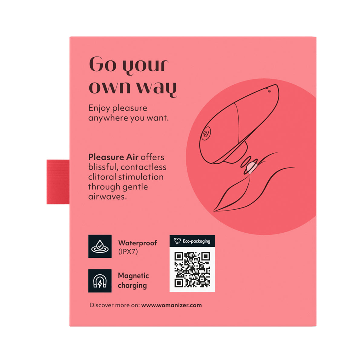 - Pleasure Air Technology: Made for you and your body - All Womanizer products feature a unique innovation called Pleasure Air Technology. Why is it so special? Your clitoris is stimulated without direct contact. Gentle air vibrations suck and massage together at the same time to provide an unprecedented orgasmic feeling.